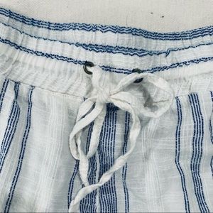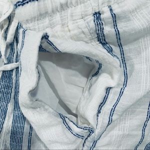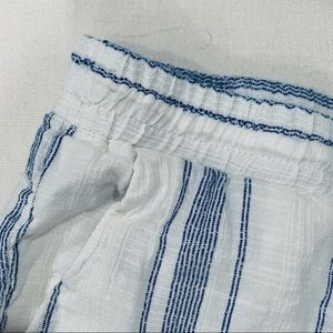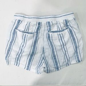 Stylish white shorts with blue stripes. Comfortable fit. Perfect for casual wear.