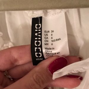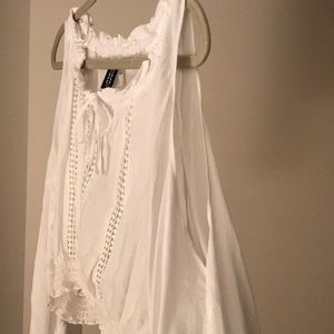 It’s a white bohemian type top with long sleeves and slits in the sleeves. It’s never been worn. I don’t wear it so i thought someone else might like it enough to buy it! It fits like a small/medium. It fits me fine and I’m an extra small. It’s also stretchy material
