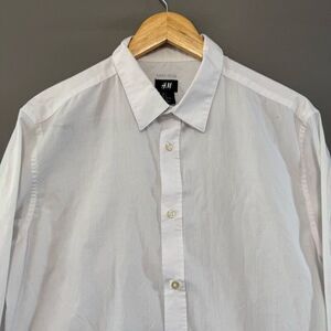 H&M White Men’s Button Down Shirt Size Large Easy Iron Cotton Polyester Blend