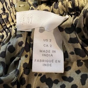 H&M Wide Blouse with Collar Green Leopard Print Size 2