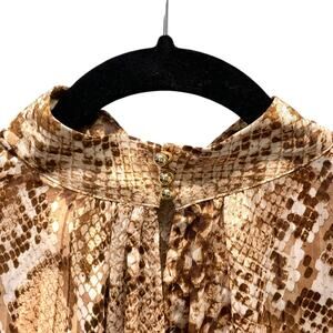 H&M Wide Cut Snakeskin Print Blouse Long Balloon Sleeve Stand Collar Keyhole 4