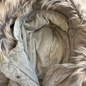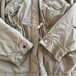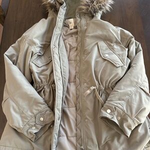 H&M Winter Coat Cozy Parka With Faux Fur Hood Pockets Sage Green Women's Sz M