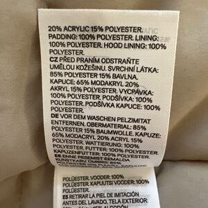 Hood: Modacrylic 65 % Acrylic 20 % Polyester 15 %