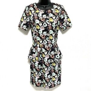 H&M Woman Black Blue Floral Peplum Midi Dress Size 4
