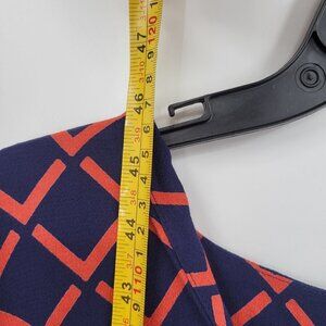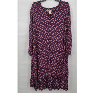 H&M Women Blue Long Sleeve V Neck Geometric Print Flare Maxi Dress Size 12