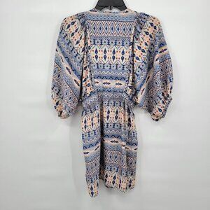 H&M Women Blue Multicolor Aztec Print Crew Neck Casual Mini Dress Size 2