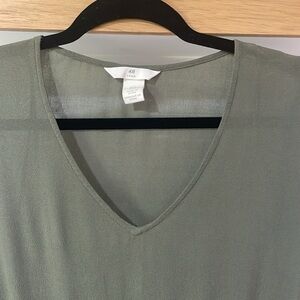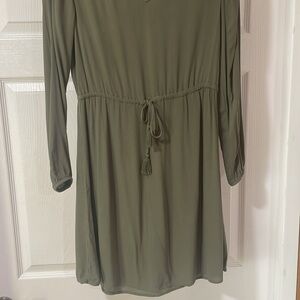 H&M Women Dress Long Sleeve Lightweight Tie Waist V Neck Light Green Size 2