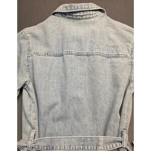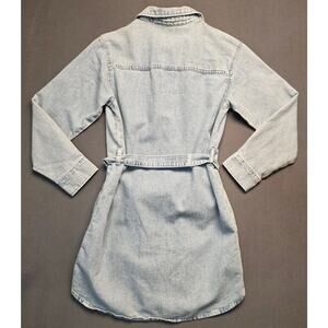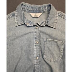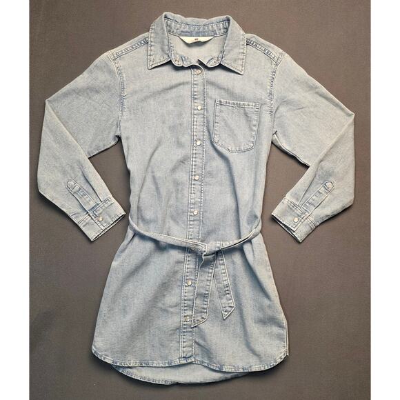 H&M Women Medium Shirt Dress Blue Jean Denim Belt Pearl Snap Long Sleeve