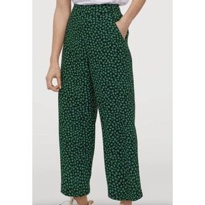 H&M Women Pants Casual leg cropped Green & Black Flo cord trousers