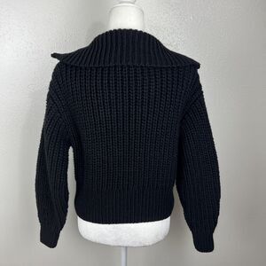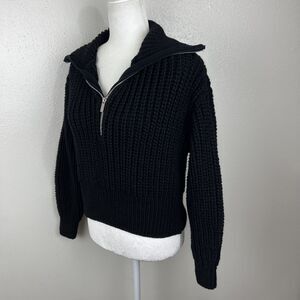 H&M Women Small Black Chunky Braided Knit Sweater Pullover 3/4 Zip Wool Blend