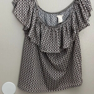H&M Women Small Print Pleated Off Shoulder Blouse Ruffle Neck