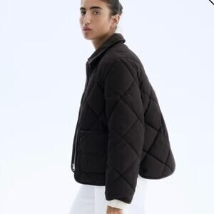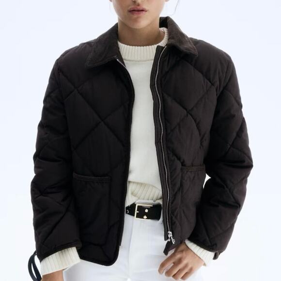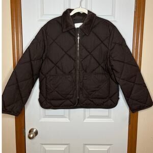 H&M Women Small Quilted Jacket Dark Brown Corduroy Collar Boxy Fit