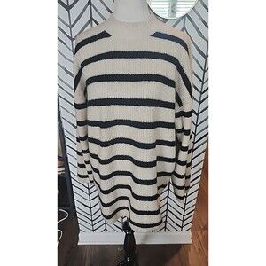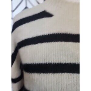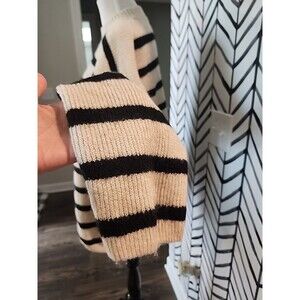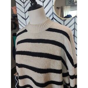 H&M Women Striped Sweater Medium Black Cream Knit Mock Neck Long Sleeve Oversize