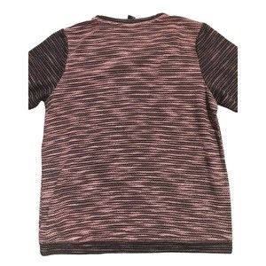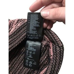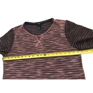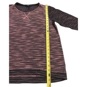 This listing is for a preowned H&M women's slub/textured 3/4 sleeve pullover sweatshirt in pink and black in size Medium.