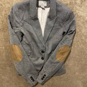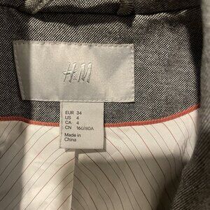 H&M Women's 4 Gray Patch Elbow Two Button Blazer Career Business Casual Pockets