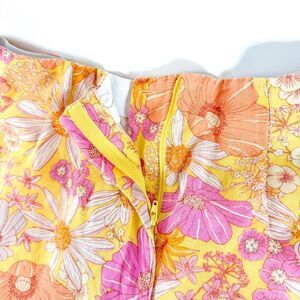 H&M 70's Style Yellow Floral Linen Blend High-Waisted Shorts - Size 10