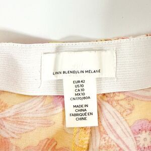 H&M floral shorts, linen blend shorts, summer high-waisted shorts, yellow print shorts, casual warm-weather fashion, women’s size 10 shorts.