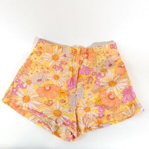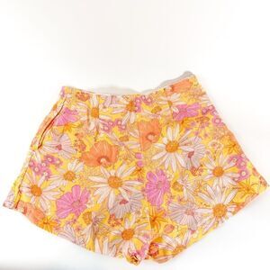 H&M Women's 70's Style Yellow Floral Linen Blend High-Waisted Shorts Size 10