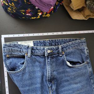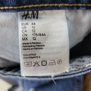 H&M Womens 90's Baggy Denim Blue Jeans Size 12 High Rise Raw Hem Loose Distressed