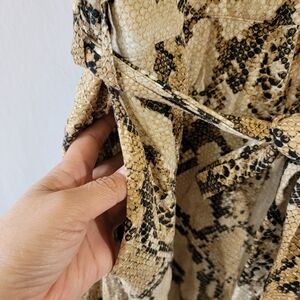 H&M Women's Animal Print Jumpsuit Size 6 Straight Leg Pocket Short Sleeve Waist Tie Button Front Closure Boho Fall