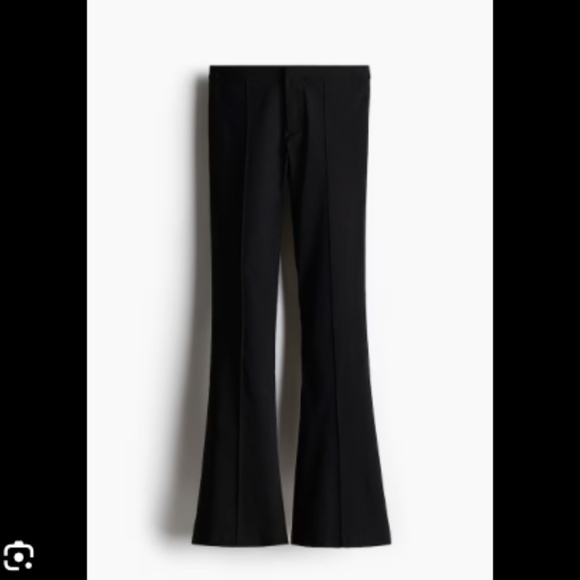 Fitted pants in woven stretch fabric. Zip fly with concealed hook-and-bar fastener, creases at front and back, and flared hems.