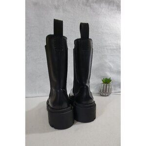 H&M Women's Black Leather Pull On Ankle Boots Chunky Heels Round Toe Size 39/8