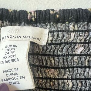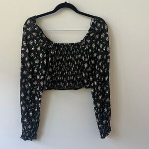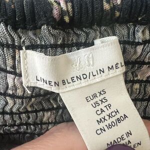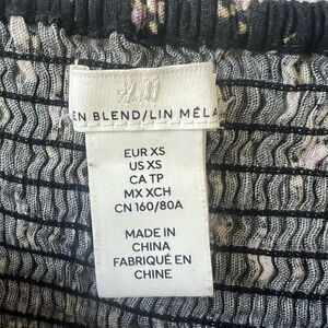 H&M Women's Black Linen Blend Floral Square Neck Puff Sleeve Crop Top Size XS