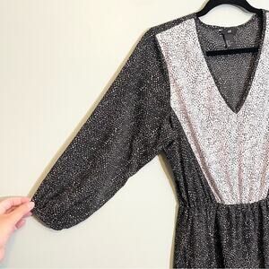 H&M Women's Black Polka Dots V-Neck Long Sleeve Cinched Baby Doll Dress Size 8