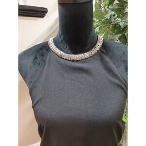 H&M Women's Black Solid Polyester Halter Neck Sleeveless Knee Length Dress 10