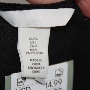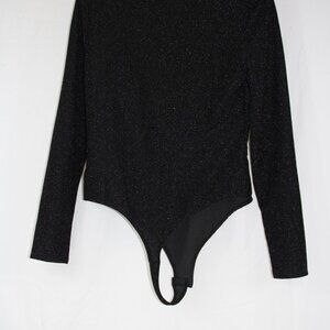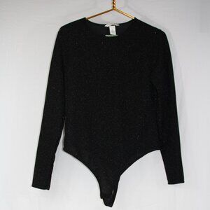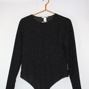 H&M Women's Black Sparkle Long Sleeve Bodysuit Size Large Snap Bottom NEW