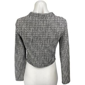 H&M Womens Black Tweed Button Long Sleeve Pockets Crop Blazer Coat Jacket Top XS