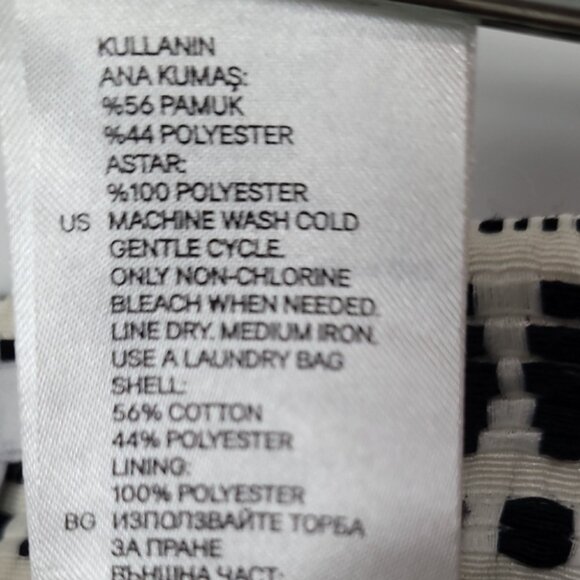 This H&M mini skirt, featuring a chic black and white textured pattern, is crafted for those who appreciate style and quality. The button-front detail adds a sophisticated touch, making it versatile for professional settings. Designed with a convenient back zipper, it ensures an adaptable fit for a polished look.
