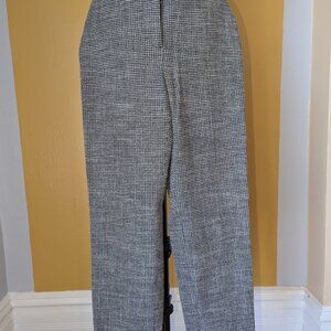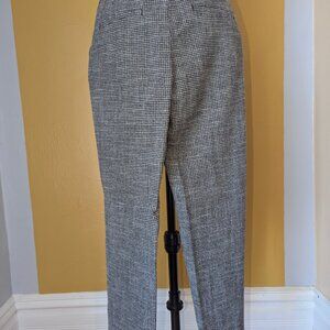 Gently worn H&M women's plaid woven trouser perfect for work. Small weave for a more subtle look. Front pockets cut to seamlessly blend into pant with mock back pocket hem. Hidden zipper with a clip waist. Straight leg that hits at the ankle.