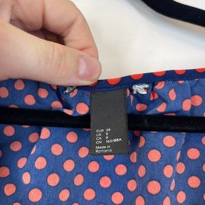 H&M Women's Blue & Red Polka Dot 3/4 Sleeve Knee Length Dress Size 8