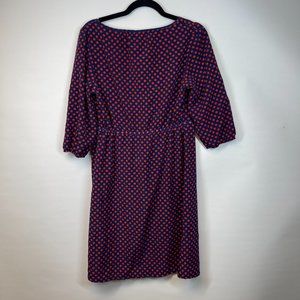 H&M Women's Blue & Red Polyester Polka Dot 3/4 Sleeve Knee Length Dress Size 8