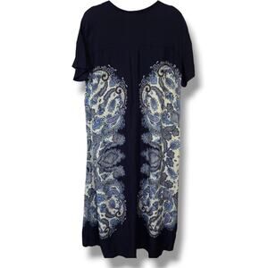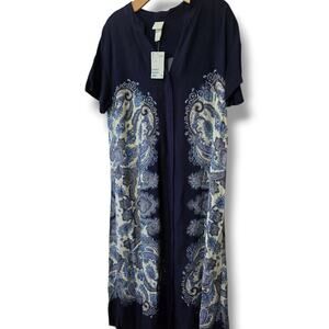 Elegant H&M women’s blue button-down dress with short sleeves and paisley print detail. Lightweight viscose fabric, midi length at 45”. Size 2, brand new with tags. Perfect for work, brunch, or casual chic looks!