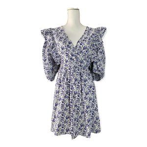 H&M Women’s Blue and White Floral Anglaise Puffed Sleeves Oversized Mini Dress M