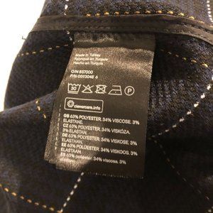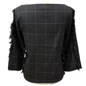 H&M Womens Boatneck Shirt Top with Fringe Navy Yellow Squares 4 Preppy Academia