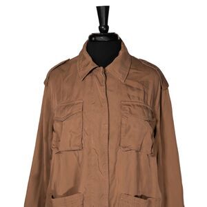 H&M Women's Brown Utility Jacket Oversized Field Cargo Twill Button Coat Small