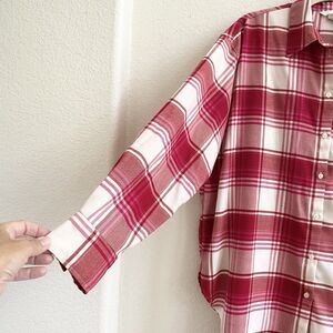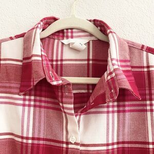 H&M Women's Button Down Red Shirt Size Medium Long Sleeve Plaid Top Blouse
