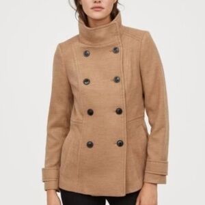 H&M Women's Camel Double-Breasted Pea Coat 🧥