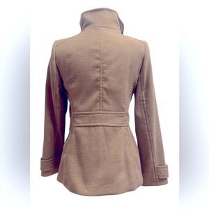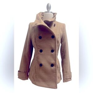 Chic camel pea coat 🧥 with double-breasted design. Features a high collar and buttoned cuffs. Ideal for layering.( pit2pit 20’ Length 26’ Approximately )
