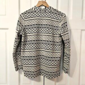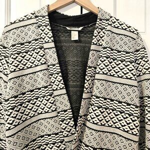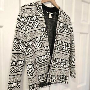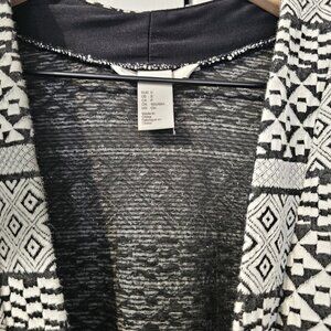 H&M Women's Cardigan Jacket Open Front Black and White Tribal Geometric Print