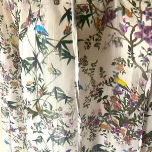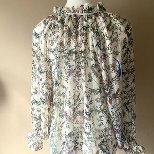 H&M Women’s Cream Birds And Floral Long Sleeve Sheer Peasant Blouse Size 8