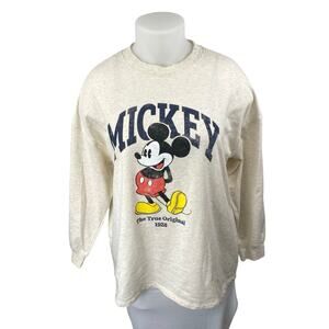 H&M Women's Cream Mickey Mouse Disney Long Sleeve Sweater Sweatshirt Top Size L