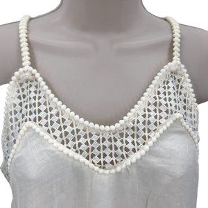 H&M Womens Cream Open Knit Lace Detail Strap Sleeve Lightweight Dress Size 4