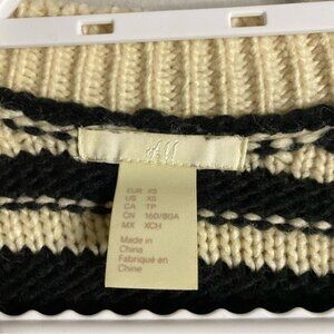 H&M Women's Cream/Black Striped Crewneck Wool Knit Sweater