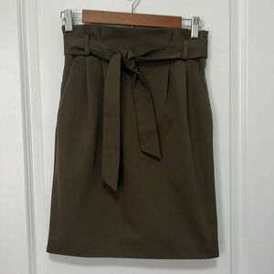 H&M Women’s Dark Khaki Green Above the Knee Skirt with Tie Belt size 2
