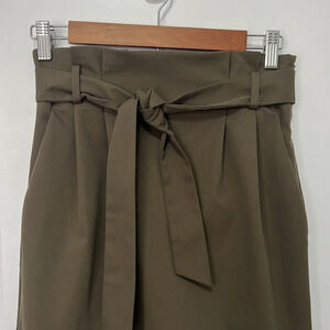 H&M Women’s Dark Khaki Green Above the Knee Pencil Skirt with Tie Belt size 2