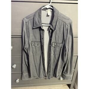 H&M Women’s Denim Western Shirt Gray Snap Button Long Sleeve Size M